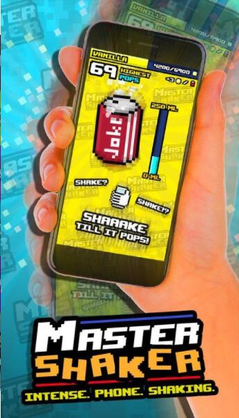 震动大师(Master Shaker)是一款有趣的休闲游戏,晃动你的手机让这些碳酸饮料喷薄而出,挑战最高分数,获得奖励解锁更多不同品牌的饮料哦。