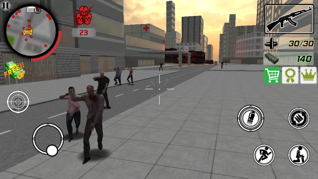 游戏《僵尸犯罪》中感觉像一个真正的黑帮射手!一群僵尸占领了这座城市。