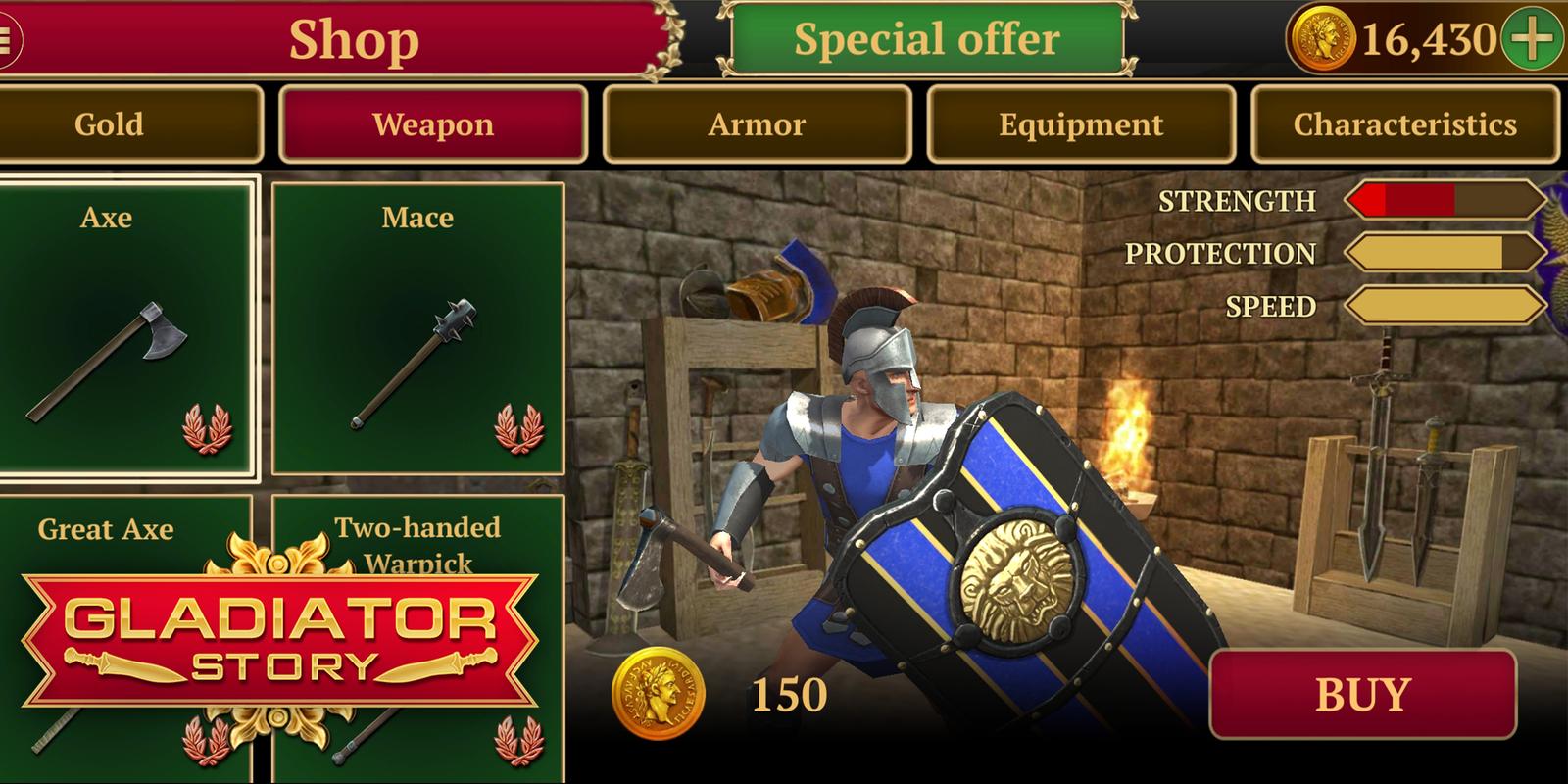 选择武器:一把剑,一把斧头,一把锤子和一把盾牌,准备战争!